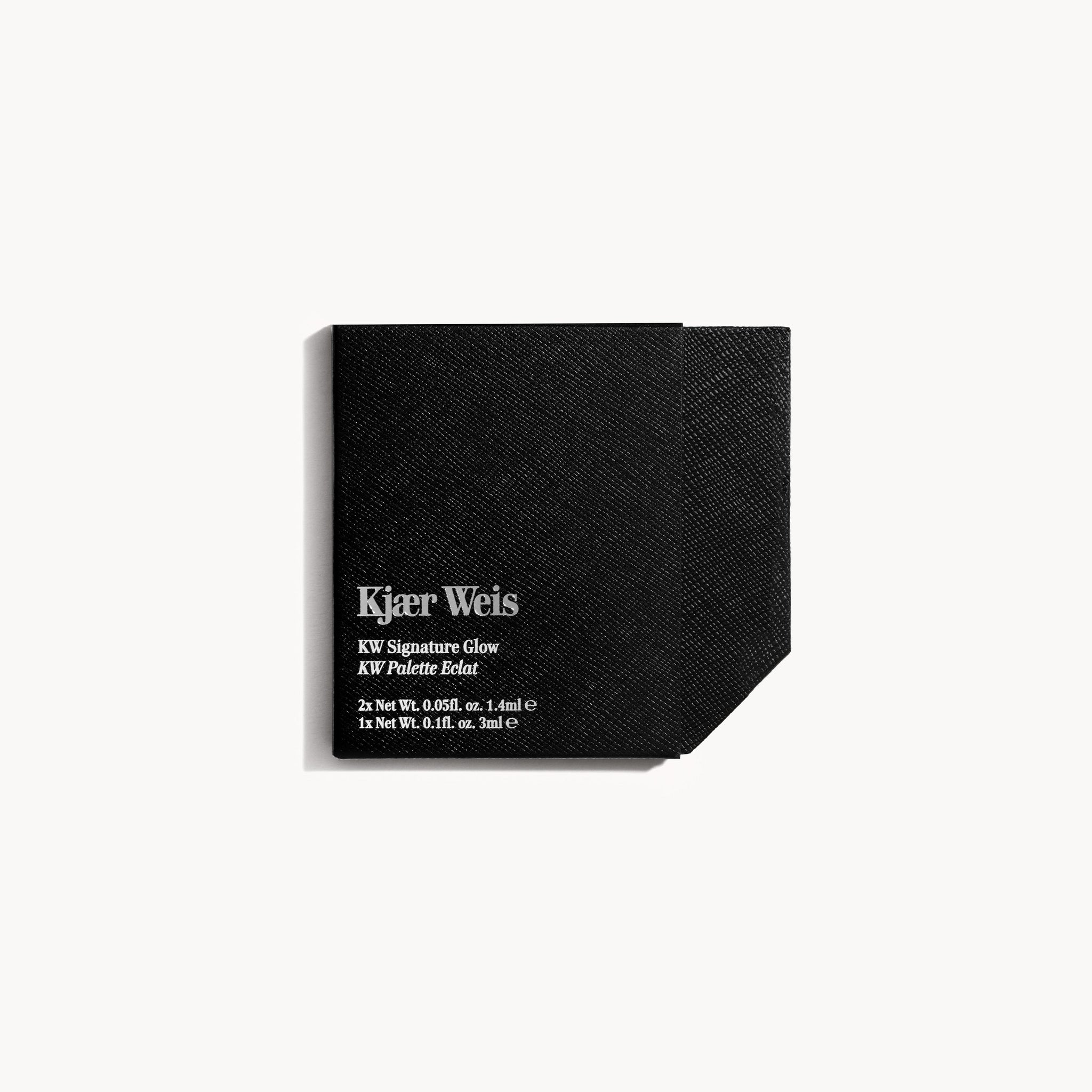Slip into shimmer with our new limited edition KW Signature Glow palette. Featuring two new ethereal shades, this palette is designed to add a kiss of shimmer to your eyes and cheeks, with the shades encased in our slimline compostable, refillable and recyclable packaging in midnight black.
